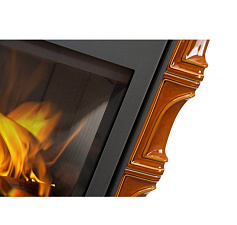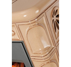 Великолепная керамическая облицовка оригинальна, но вместе с тем сдержанно элегантна. Аккуратно сделаны и обработаны мельчайшие элементы, углы, плавные линии. Моделям с изящными каминными полочками часто отдают предпочтение лирически настроенные покупатели. Не дают вылететь из топки в комнату раскаленным искрам и углям широкие заслонки из огнеупорного стекла. Но через них приятно смотреть, как горят поленья, как каждую секунду меняется пламя.