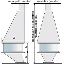 Корпуса каминов спроектированы так, что они маскируют не только топку, но и дымовую трубу, включая её в целостный образ. Передовые технологии обработки металлов позволяют дизайнерам фирмы создавать сложные формы без малейшего ущерба для качества.
