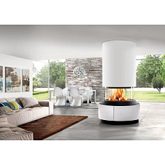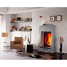 Компания Piazzetta производит также камины ультрасовременных форм, есть и минималистические модели: например, встроенные камины, которые представляют собой ровное прямоугольное стекло в стене, нише или колонне, за которым бьётся яркое пламя.