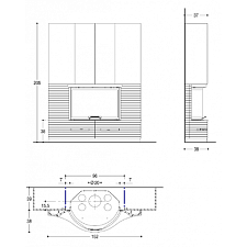 Компания Piazzetta производит также камины ультрасовременных форм, есть и минималистические модели: например, встроенные камины, которые представляют собой ровное прямоугольное стекло в стене, нише или колонне, за которым бьётся яркое пламя.