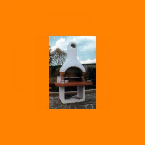 Барбекю из конгломерата белого и коричневого цвета, предназначенная для использования только с древесным углем. Решетка для жарки и направляющие встроены в топку.