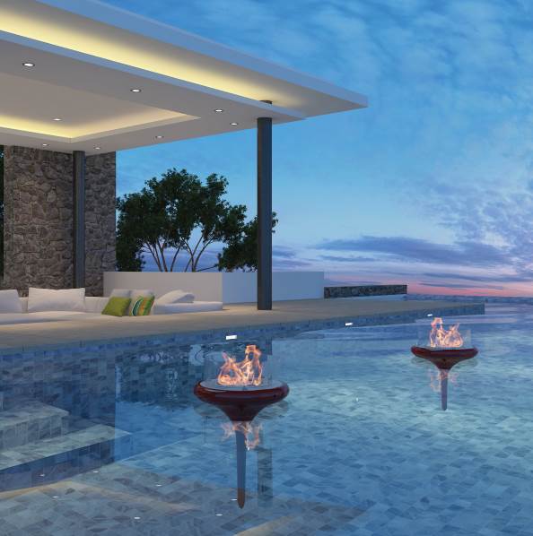 Напольный биокамин GlammFire Flut идеально подходит для оформления дизайна открытых и закрытых бассейнов, а также прудов. Концепция была навеяна образом прекрасных водных кувшинок.