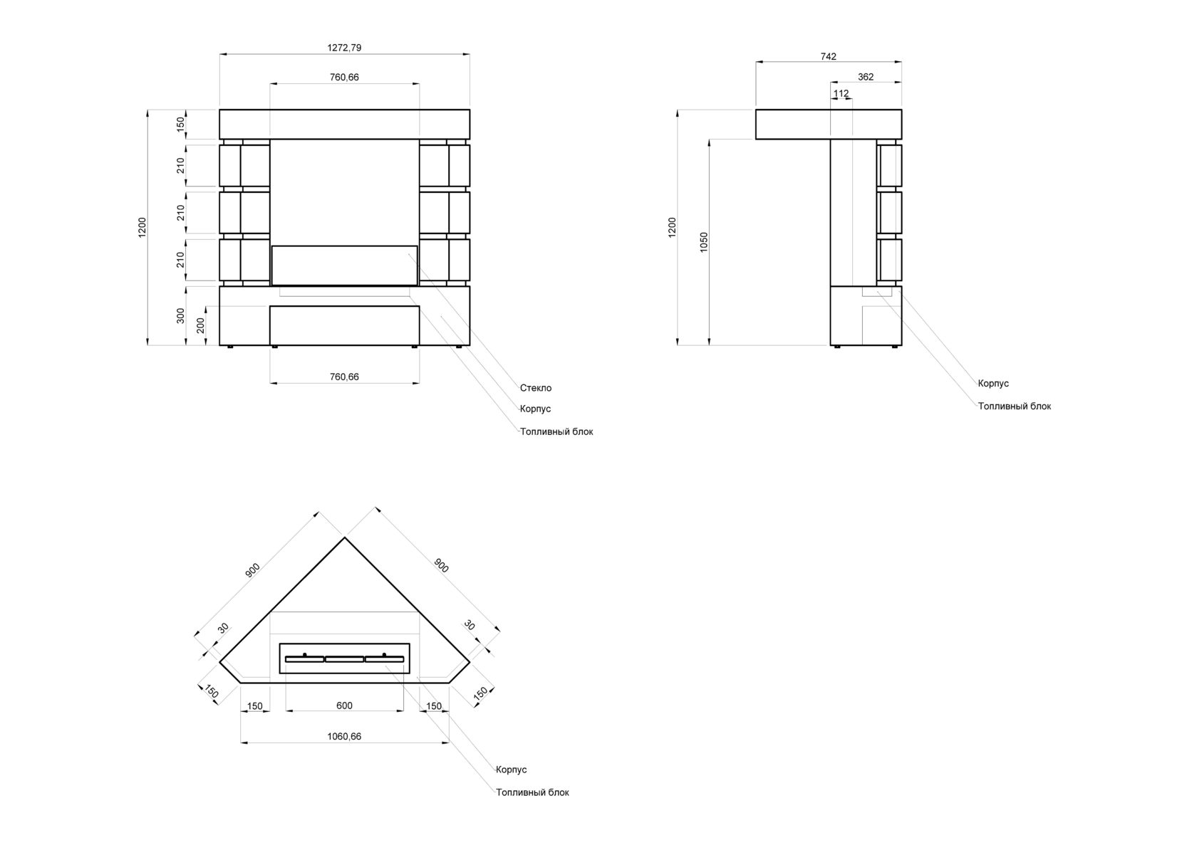 - Габаритные размеры ШxГxВ, (мм): 1272x742x1200