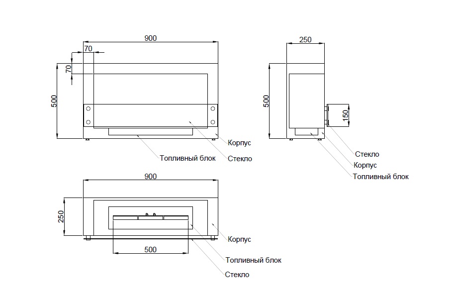 - Габаритные размеры ШxГxВ, (мм): 900x250x500