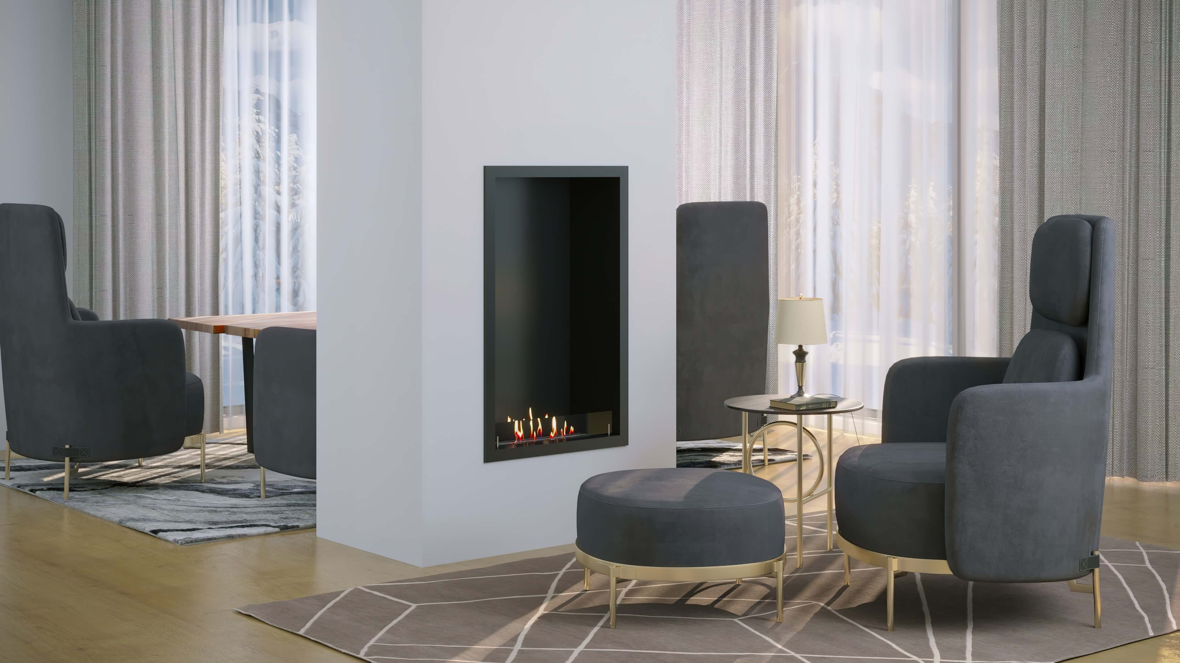 - Тип биокамина: Встраиваемый вертикальный