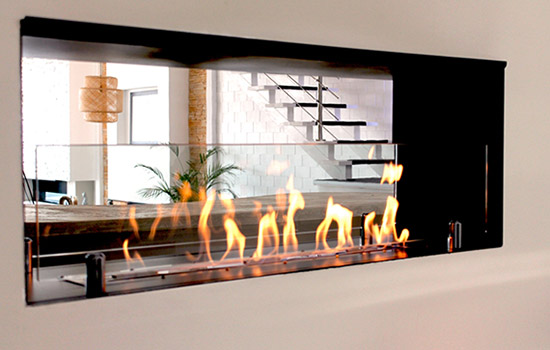 BKBF-B — встраиваемый двусторонний биокамин, спроектированный для разделения помещений.