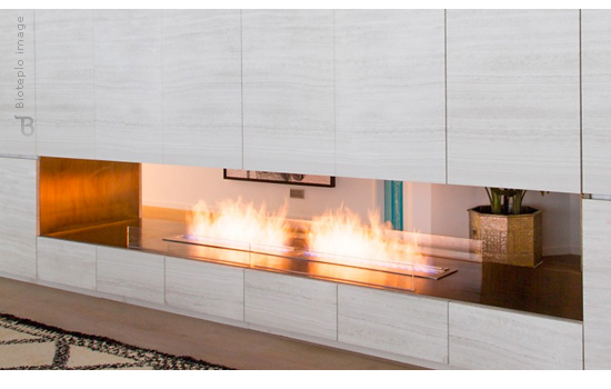 Великолепный биокамин без задней стенки, встроенный в межкомнатную перегородку.