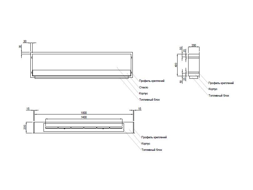 - Габаритные размеры ШxГxВ, (мм): 1800x200x400