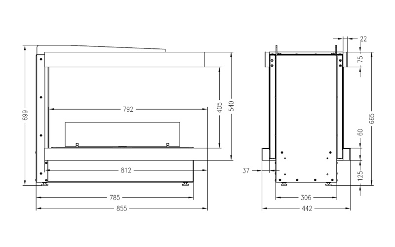 Все порталы и топливные блоки изготовлены из высококачественных металлов на современном оборудовании с вниманием к деталям, что позволяет нам давать гарантию на корпус камина 10 лет.