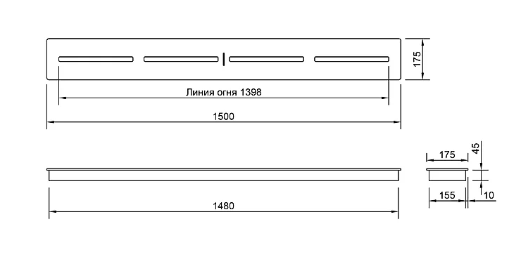 - Габаритные размеры ШxГxВ, (мм): 1500x175х45