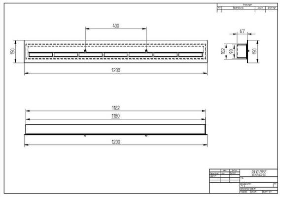 - Габаритные размеры ШxГxВ, (мм): 1200х150х67