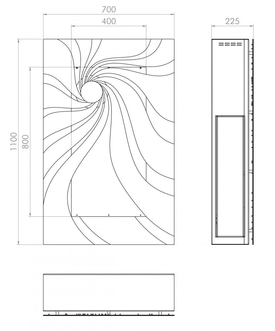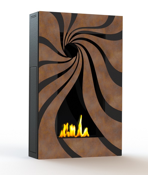 GlammFire Hypnosz EVO plus - вертикальный настенный камин в современном стиле с красивым фасадом из спиралевидных стальных элементов.