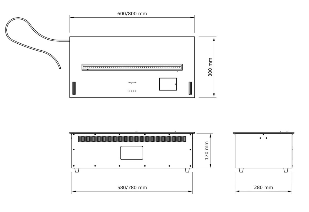 - Габаритные размеры ШxГxВ, (мм): 600х170х300