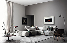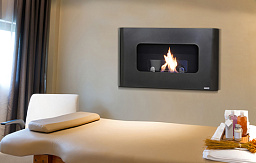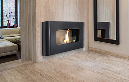 Дополнительно заднюю стенку очага биокамина возможно укомплектовать черным защитным стеклом, что придаст глубину очагу и будет органично отражать языки пламени. Возможна комплектация фирменным топливным блоком любой серии как мануального управления, так и автоматического.