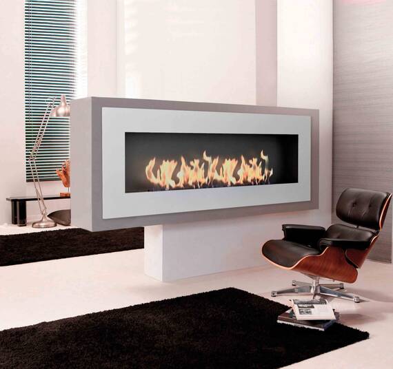 Zefire Elliot 1800 с белой рамкой – лаконичная и стильная модель встраиваемого настенного биокамина, которая будет одинаково удачно смотреться в современном и классическом интерьере. Такой биокамин не занимает в помещении лишнего пространства, потому подойдет даже для небольших площадей. Его монтаж не требует устройства дымохода или вытяжки и может выполняться без специальных разрешений.