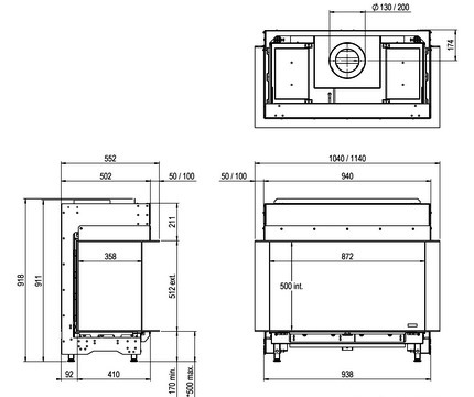- Диаметр дымохода, (мм) 200