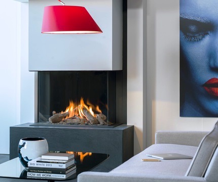 Современный газовый камин Faber Matrix 800/650 III с прекрасным трехсторонним видом огня. Поскольку камин оснащен треххсторонним стеклом, у вас есть несколько позиций с потрясающим видом на красивое пламя.