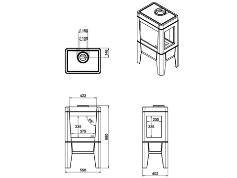 - Диаметр дымохода, (мм) 200
