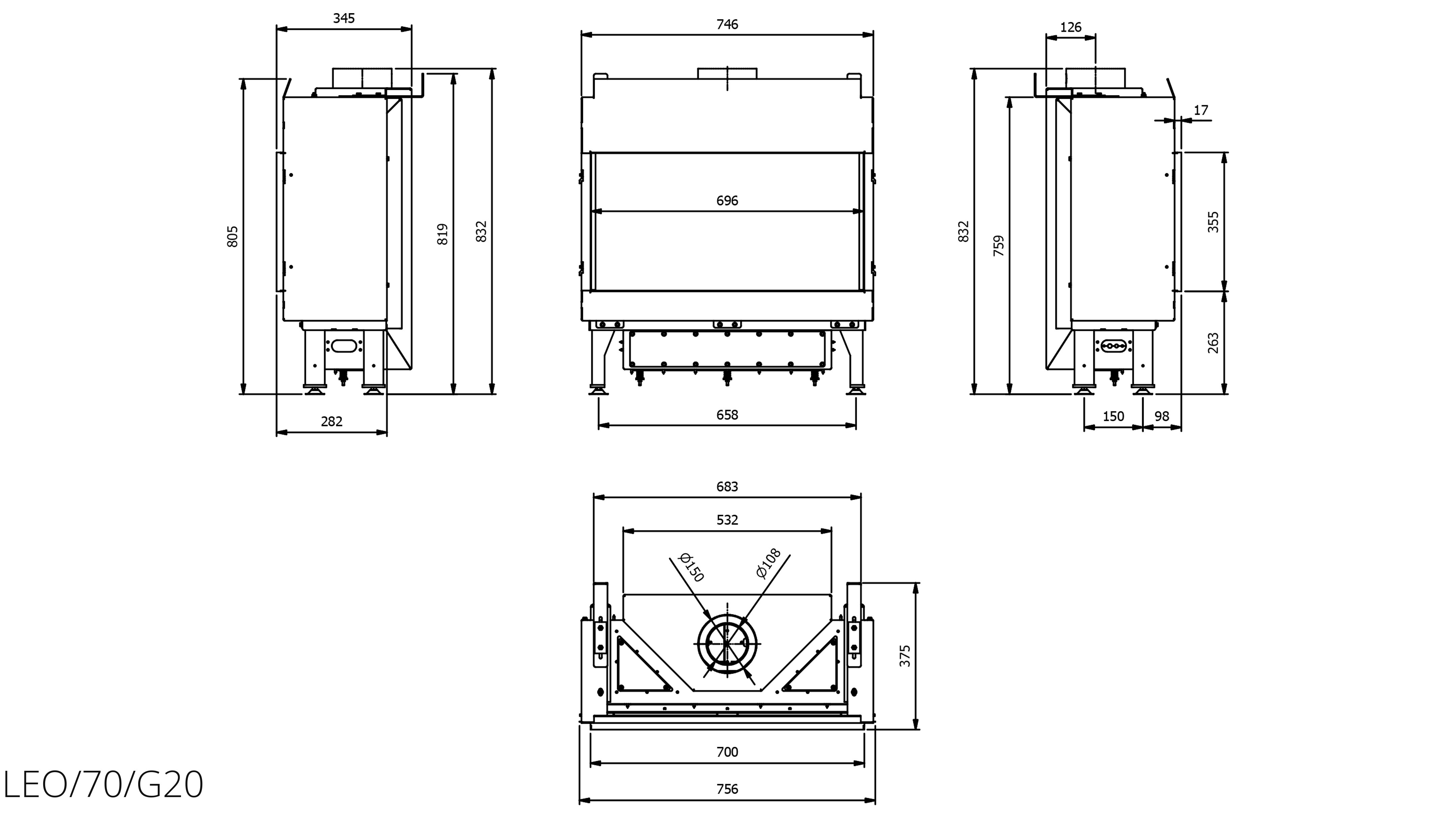 Газовый камин Kratki LEO/70/G20 магистральный газ