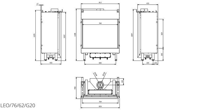 Газовый камин Kratki LEO/76/62/G20 магистральный газ