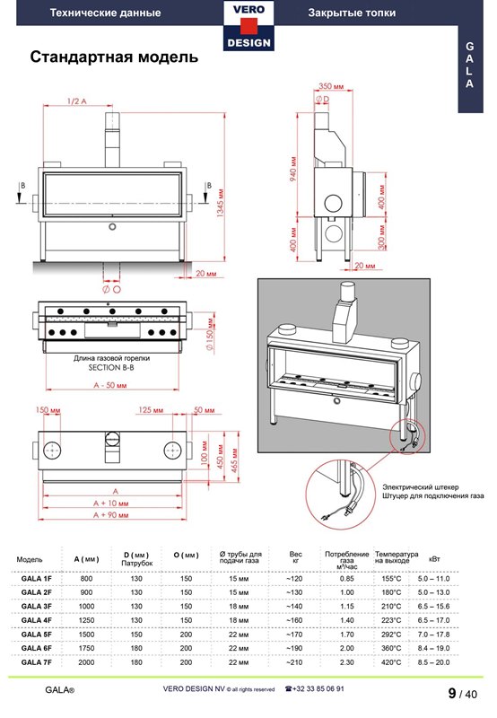 Газовый камин Vero Design Gala GA 6F