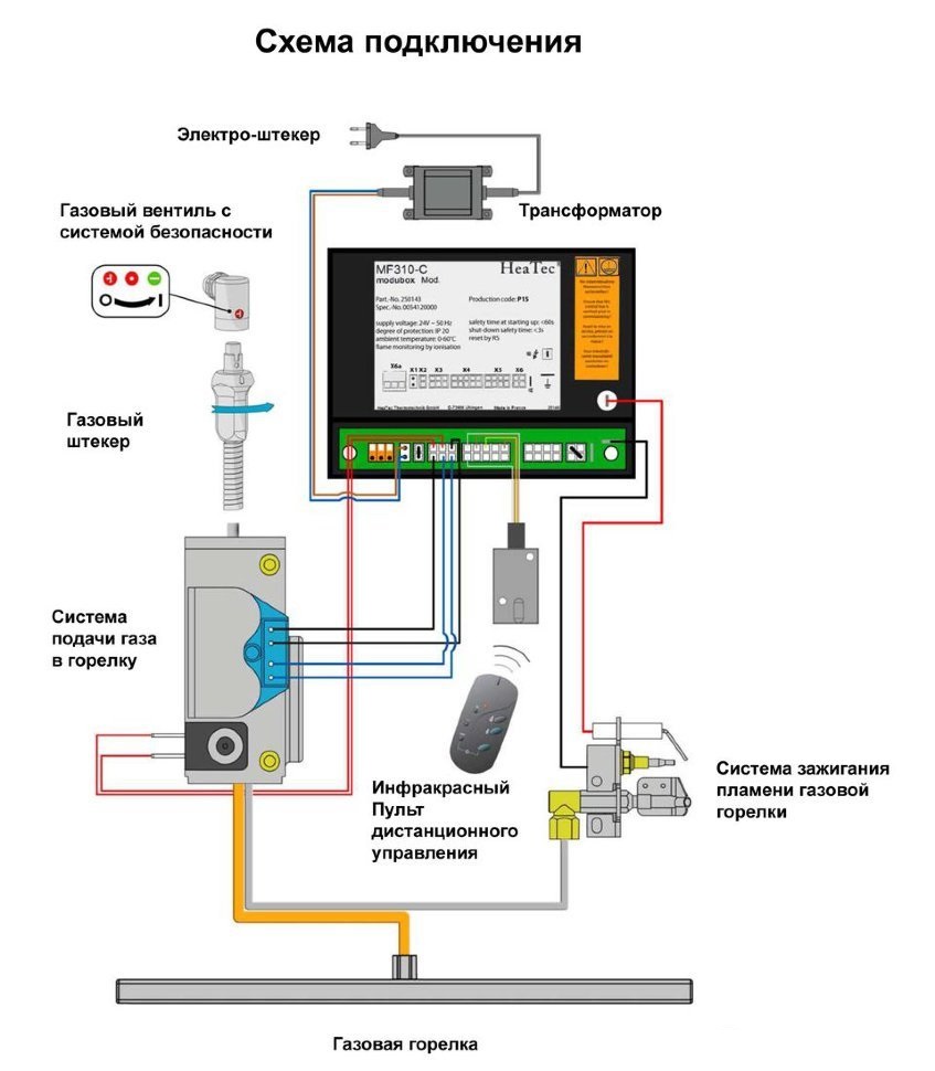 - Термодатчик в системе зажигания огня – блокирует подачу газа в каминную топку если нет возгорания в камине при его включении или если пламя в камине гаснет.