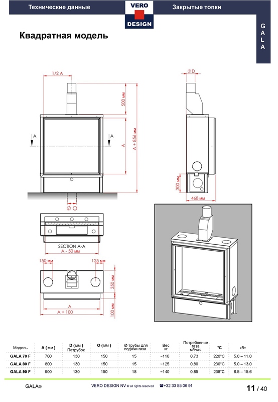 Газовый камин Vero Design Gala GA 90