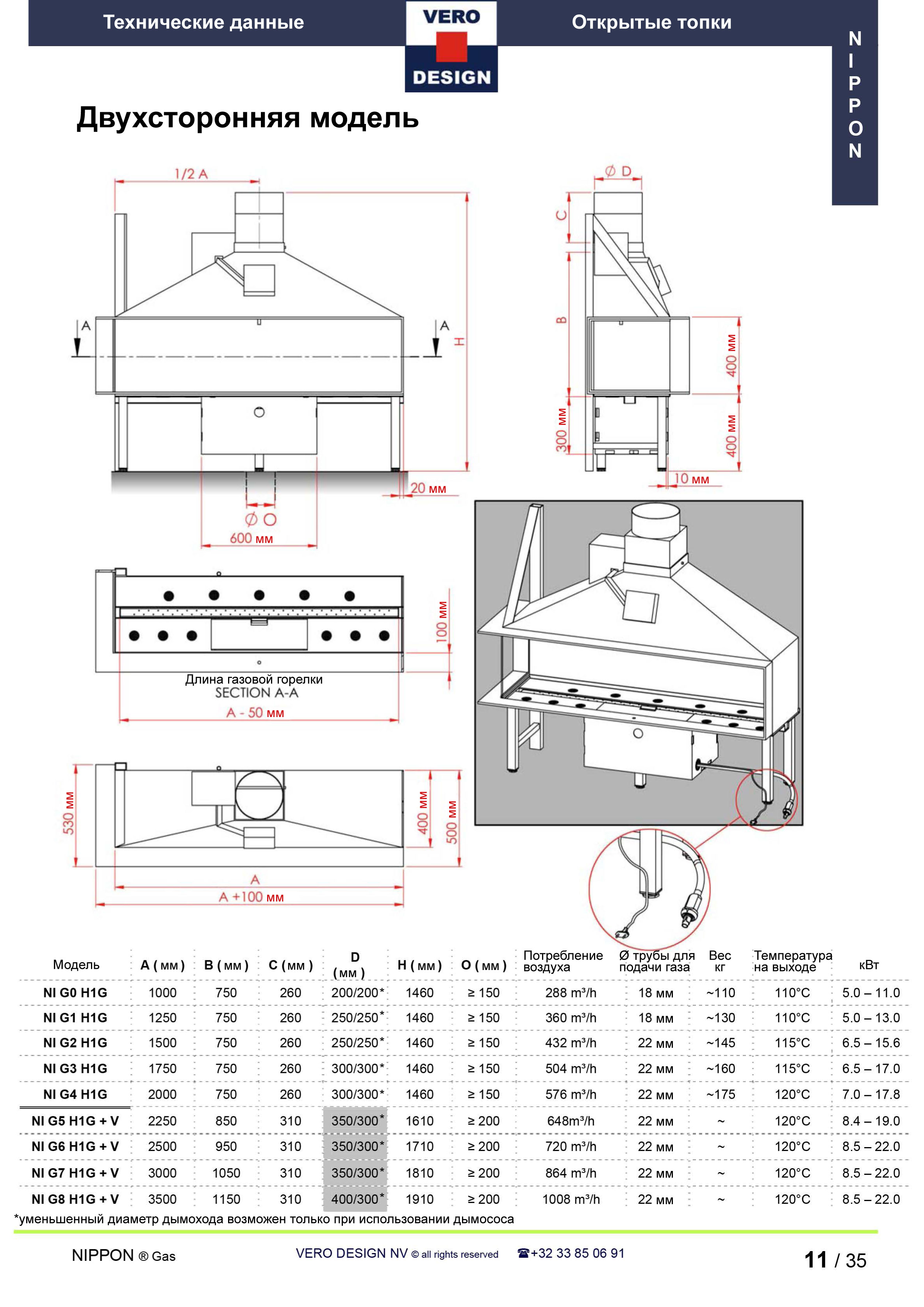 Газовый камин Vero Design Nippon NI G5 H1