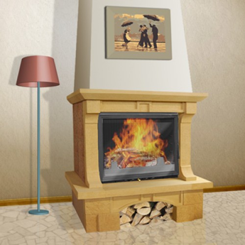 Каминная облицовка Лира 700 изготовлена из камня META Stone™ (бежевого цвета). Вставки в боковые панели выполнены из пеноблока и подготовлены для последующей отделки (может использоваться любая отделка, толщина материала не более 30 мм). Отделочный материал в комплект не входит.