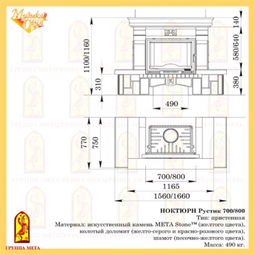 Каминная облицовка Мета Музыка Огня Ноктюрн Рустик 800