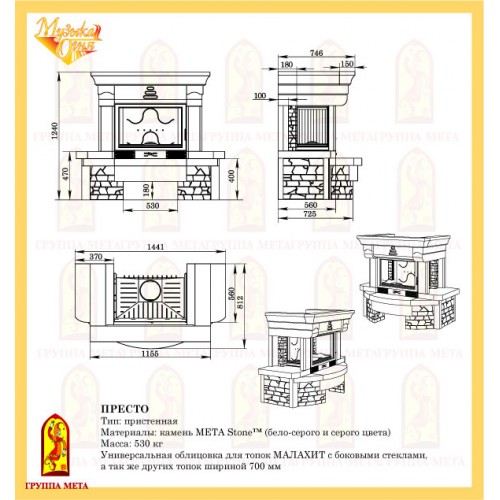 Облицовка камина Престо изготовлена из камня Meta Stone. Облицовка Престо изготовлена с использованием новых тexнoлoгий в обработке камня. Основной материал, используемый для изготовления облицовок серии «Музыка Огня» - это архитектурный камень Мета Stone. Эти кaмни очень прочные и долговечные, не выцветают, идеально подходят для эксплуатации в условиях Российского климата.