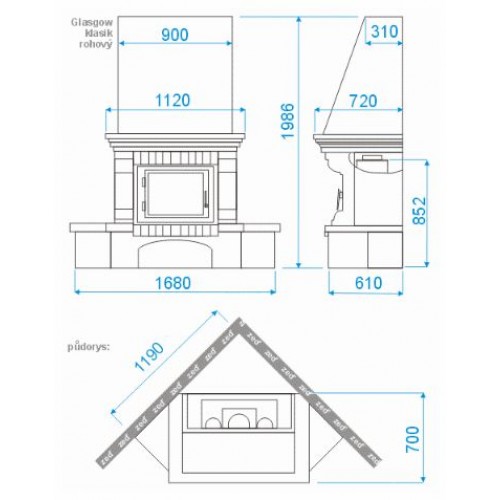 Каминная облицовка ABX Glasgow Klasik (угловой, деревянная балка)