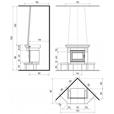 - Габариты, пристенный вариант: 1200x1110x1200 мм