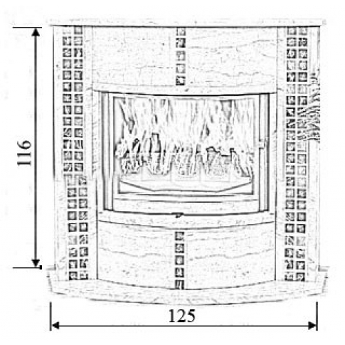 - Топки: шириной „700 мм” с прямым или панорамным стекломРазмеры: пристенный вариант - 125x116x39 см