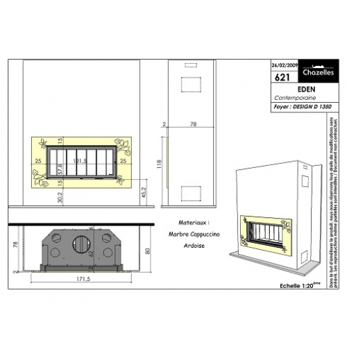 Встраиваемый в стену камин Chazelles Eden - это элегантная модель, изготовленная в стиле модерн. Все камины производителя выполняются из самых качественных долговечных материалов и проходят множество тщательных проверок и тестирований на соответствие государственным и международным стандартам качества. Фирма-производитель каминного портала находится во Франции. Встраиваемый в стену камин Eden изготовляется из декоративного шлифованного мрамора оттенка капучино. Модель поставляется как с необработанным рельефом, так и с гладкой поверхностью по выбору, а также в различных цветовых исполнениях. Основное назначение каминного портала Chazelles Eden - это создание домашнего уюта, романтики и тепла долгими темными вечерами. Благодаря своему оригинальному дизайну в современном стиле, модель отлично впишется в любой стиль интерьера: хай-тек, минимализм, конструктивизм, арт-деко, модерн, классицизм или эклектика. Подходящие топки: D1350 Особенности каминной облицовки: Встроенный камин. Мрамор декоративный шлифованный блестящий цвета капучино. Гравирован необработанным рельефом. На выбор: рельеф необработанный или гладкий. Технические характеристики каминной облицовки: Тип: фронтальный. Тип используемого топлива: дрова. Присоединение дымохода: сверху. Диаметр дымохода: 23см. Общий размер (см) : 172 x 2 x 88. Вес : 180 Кг Возможно исполнение в следующих цветах: