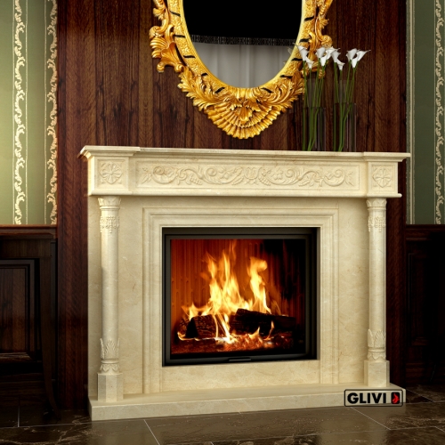 - Камин выполнен из полированного мрамора Crema Marfil.