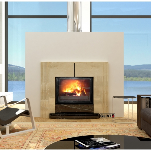 - Камин выполнен из полированного мрамора Crema Marfil, Negro Marquina.