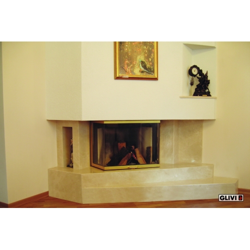 - Камин выполнен из полированного мрамора Crema Marfil.