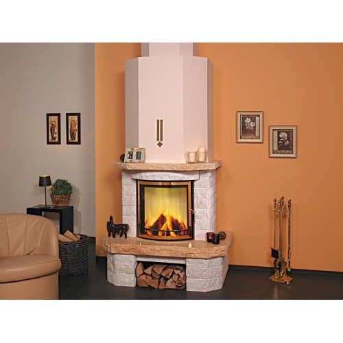 Камин Hark 1/131.0. Пристенный мраморный камин из Crema Caliza bossiert / Amarillo Nilo poliert/bossiert.