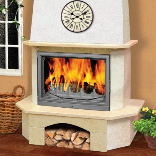 Madeira Ravena выполнена из натурального камня: мрамор Giallo. Вариант пристенный или угловой. Подходят под эту облицовку топки шириной до 700 мм с прямым стеклом.