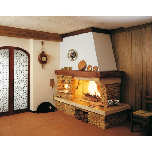 Камин Palazzetti Valcomelico выполнен из Solendo под кирпич, столешница из полированного и бучардированного Gialle Reale, сосновая балка.64 варианта исполнения: угловой правый, угловой левый, банкета справа или слева, а также вариант исполнения с 2 банкетами, облицовка под различные топки. На сайте указана стартовая (минимальная) стоимость данной облицовки под различные топки.Внимание: духовки диаметром 56 или 100 включены в стоимость облицовки.