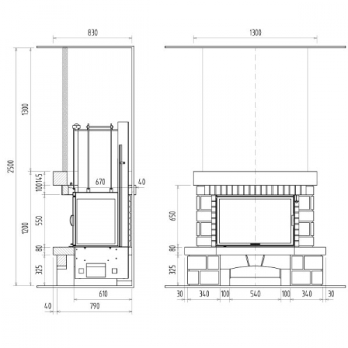 | Расположение камина | пристенный |