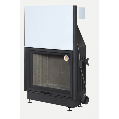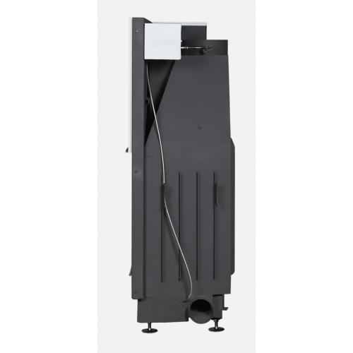 Входные патрубки O 125 мм, расположенные слева и справа в нижней части печи, служат для подводки воздуха для горения, вторичного дожига и отчистки стекла, позволяют брать воздух через систему трубопроводов для горения из другого помещения (например, подвального). Дымоходный патрубок O 250 мм снабжен встроенной шиберной заслонкой с дистанционным приводом, выполненным из нержавеющей стали, Позволяющей в зависимости от уровня горения регулировать тягу. В горизонтальном положении, положение закрыто, перекрытие патрубка шиберной заслонкой составляет 75%, что не позволит скапливаться угарному газу. Конвекционные патрубки O 125 мм в верхней части топки, служат для отвода теплого воздуха по трубопроводам от печи, для равномерного прогрева помещения и/или обогрева другой комнаты. Механизмы регулировок и подъёма двери, кроме привода шиберной заслонки, защищены кожухами от повреждения во время монтажа и эксплуатации. Предусмотрены съёмные проушины, для удобства транспортировки и монтажа. Футеровка топки выполнена из литьевого шамота.