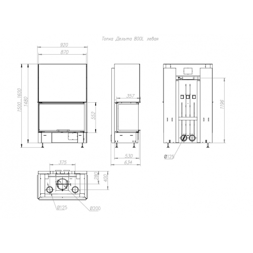 - - Диаметр дымоходного патрубка–200 мм
