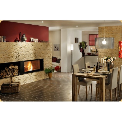 мм), комплект для притока воздуха (клапан+гофратруба), внутренний шамот. Возможен вариант топки с уменьшеной глубиной. Серия топок Architecture – это эксклюзивное предложение и интерьерное решение по каминам в стиле минимализма с необыкновенно большими размерами топок (до 166 см). Эта изысканная серия позволяет по-новому воспринять красоту горящего в камине огня и получить от него наслаждение, не отвлекаясь на лишние детали, ручки для подъема дверец или зольник. Внутренняя отделка самых больших моделей очень многообразна - кроме стандартного шамота можно заказать стильный черный или отделать заднюю стенку специальной толстой сталью, которая очень красиво смотрится в современном интерьере. Основные особенности топок Brunner: система "чистое стекло" - в топках Brunner воздух, попадая в топку, создает невидимый щит перед стеклом, обдувая его чистым воздухом и предотвращая оседание сажи и копоти на стекле. Если дверь плотно прилегает к корпусу, а корпус уплотнен, то система работает безупречно. Система Easy-lift и специальный профиль для дверец Brunner с особым уплотнительным шнуром предотвращает попадание неконтролируемого воздуха в топку; "легкое поднятие" - при открывании дверца сначала делает небольшое движение от рамы, после чего легко скользит вверх. При закрытии дверца скользит вниз и перед самым закрытием двигается в сторону рамы и плотно прилегает к ней. Эта уникальная система предотвращает преждевременное изнашивание уплотнительного шнура и гарантирует герметичность топки; "чистка стекла" - повернув легким движением небольшой рычаг на дверце, стекло откидывается вперед , после чего его легко можно почистить; "система контроля" - компания Brunner разработала электронную систему контроля над горением. Эта система аВ атоматически регулирует интенсивность горения дров, а о неполадках или необходимости новой закладки дров сообщает на дисплее. Конструкция топок Brunner: Внешний вид рамок: Цвет рамок: Внешний вид дымосборников топок: Система HeatSTOP: (При закрытии специальных «Тепловых штор» HeatSTOP в топочной камере сгорания сохраняется до 90% излучения. Жар камина экранирует обратно. Ваша прикаминная зона может приблизиться к очагу практически до 50 см.)