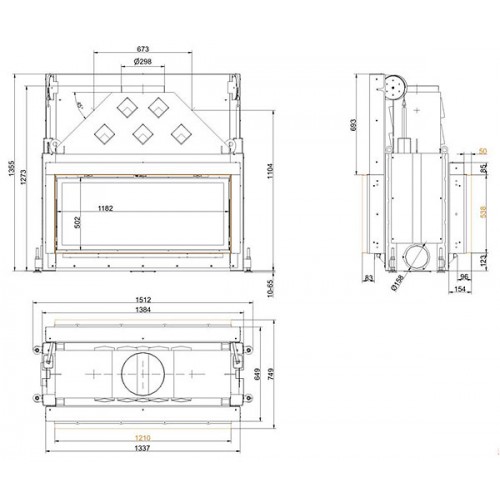 (При закрытии специальных «Тепловых штор» HeatSTOP в топочной камере сгорания сохраняется до 90% излучения. Жар камина экранирует обратно. Ваша прикаминная зона может приблизиться к очагу практически до 50 см.)