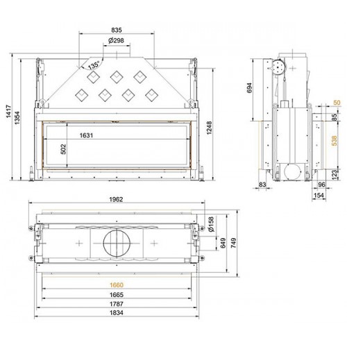 (При закрытии специальных «Тепловых штор» HeatSTOP в топочной камере сгорания сохраняется до 90% излучения. Жар камина экранирует обратно. Ваша прикаминная зона может приблизиться к очагу практически до 50 см.)
