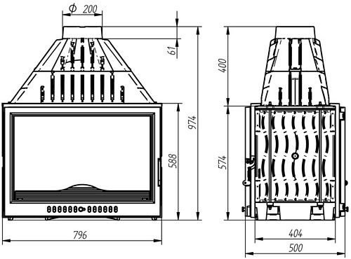 Прямое термостекло открывает отличный вид на огонь с двух сторон. Регулировка подачи воздуха на горение позволяет управлять расходом дров и они могут медленно тлеть в течение 10-12 часов, при этом топка будет отдавать тепло всю ночь или весь день.