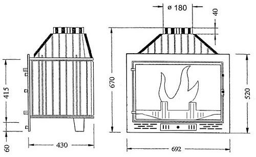 - Диаметр дымохода, мм: - 180