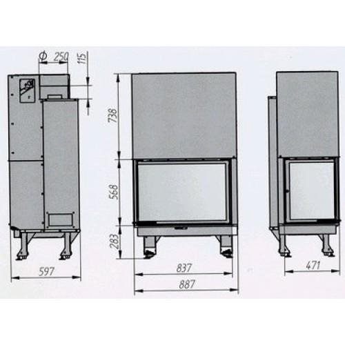 Топка состоит из корпуса, выполненного из высококачественного стального листа, герметически сваренного, внутренняя часть футерована шамотом. Вертикальное и боковое открывание дверцы с боковым (правым или левым) обзором огня. Система «чистое стекло», дожиг дымовых газов.Регулировка подачи воздуха на горение.